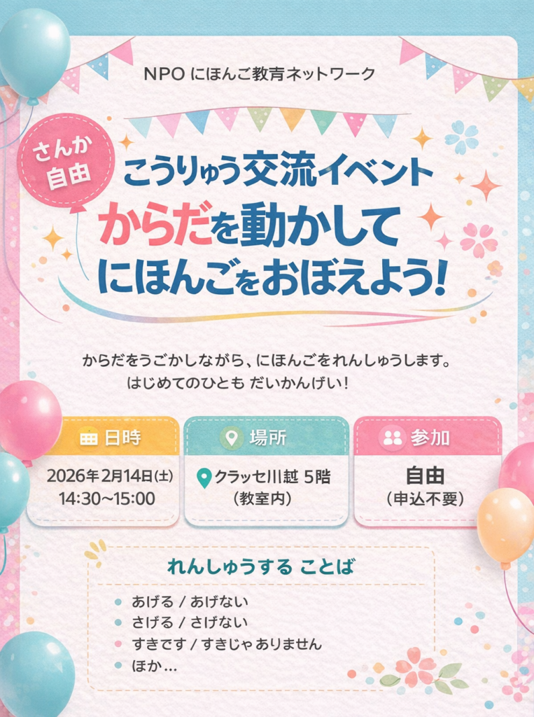 2/14(土)交流イベント「からだを動かしてにほんごをおぼえよう」